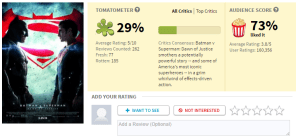 Last week, I got to see an advanced preview screening of Batman v. Superman: Dawn of Justice. It was the morning before the movie came out for general audiences, but the reviews had already started coming in. I’m not the type of avoid reviews beforehand. I’d already seen the Rotten Tomatoes score, and I’d read the NYT review.