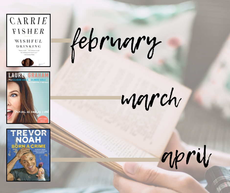 But, through all this I learned that it is helpful for a book club to have some sort of theme to guide it, and that long distance book clubs where you meet via video chat and coordinate through something like a Facebook group actually work kinda well. And I know I love pop culture, and I especially love celebrity memoirs, so…