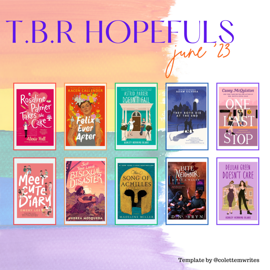Now that June is here, I’ve made myself a TBR list to focus my attention on YA and Adult LGBTQ+ romances. Here are the ten books I’m hoping to read this month: