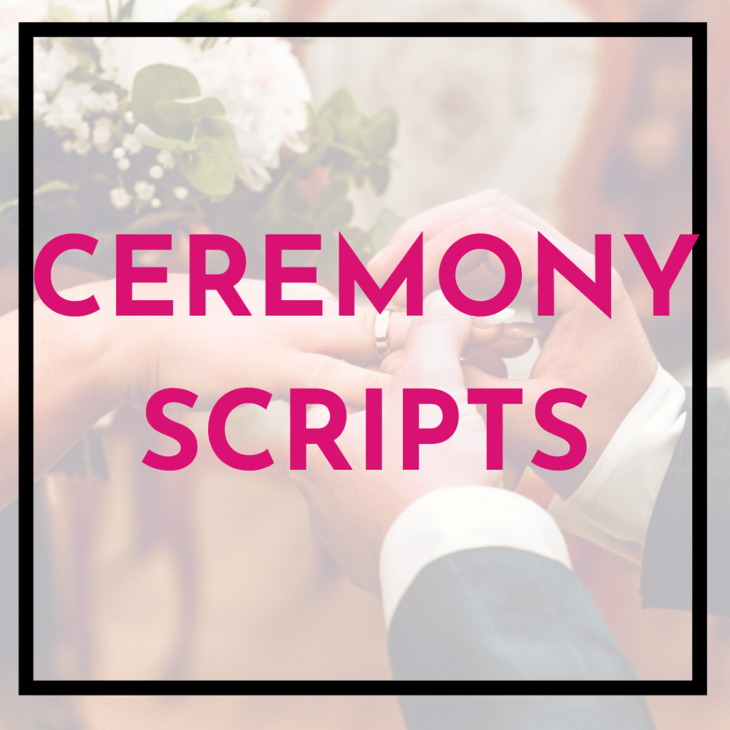 $350 – 15-20 minute ceremony script, including response vows, ring exchange, and individual speeches